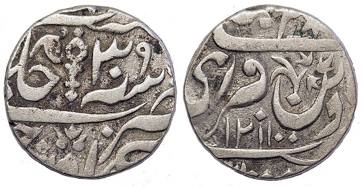 Jahanshi (Balwantnagar) mint Ob. Rev. (1209) Ry3(5) Rupee Silver 11.09g, 21mm KM 143 Zeno #159787 |