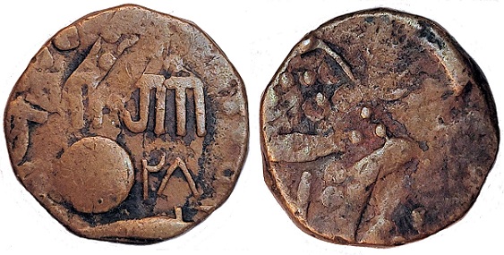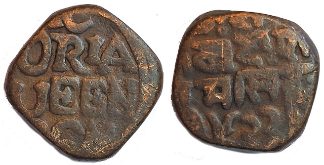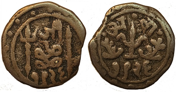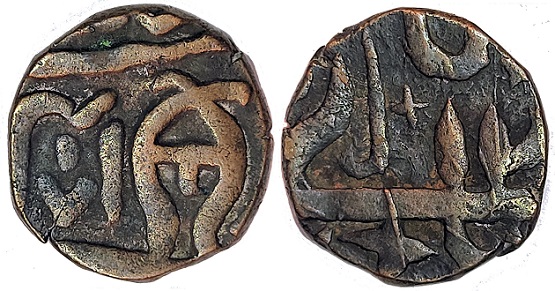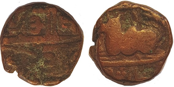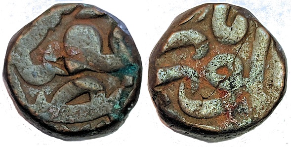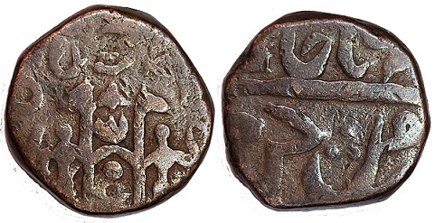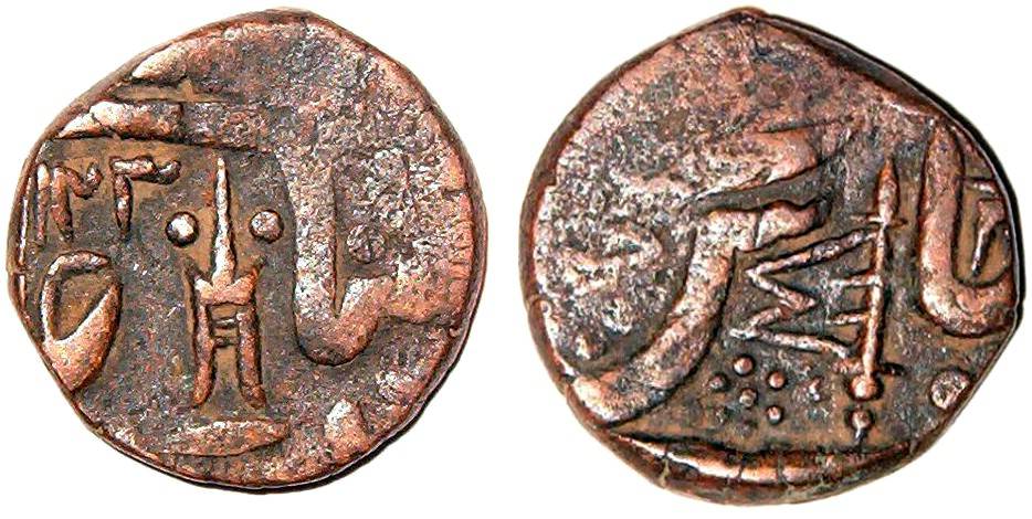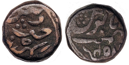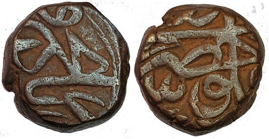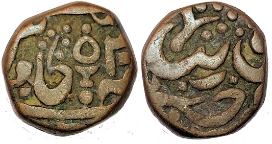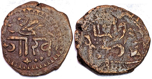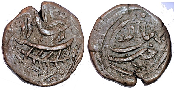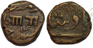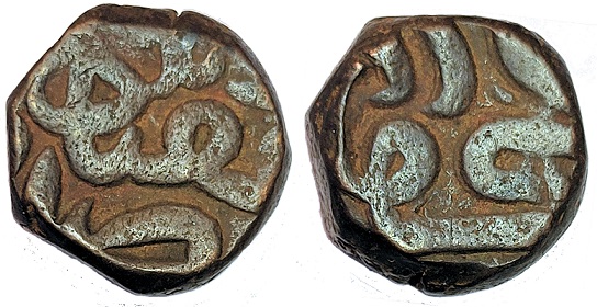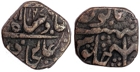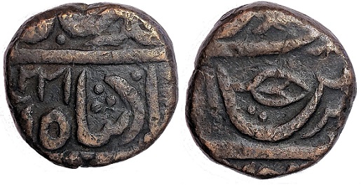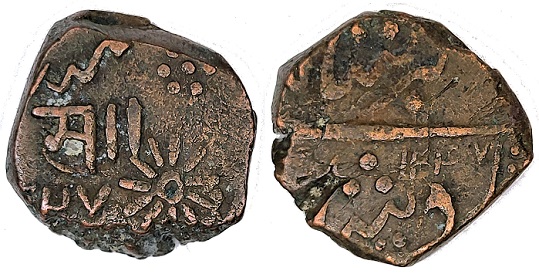 mint: Malwa Ob. Rev. AH- AE Falus 6.31g, 12x15mm KM; mintage: Edge - Engraver: Zeno #324368 |