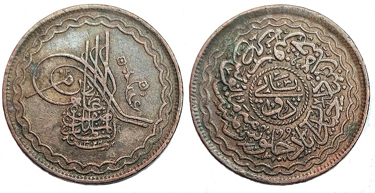 mint: Ob. Rev. 1880-1895 half Paisa AE 5.22g, 18x14mm KM; mintage: Edge - Engraver: |