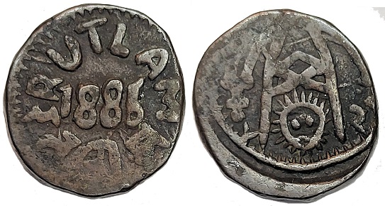 mint: Ob. Rev. AD1885/VS(19)42 Paisa AE 9.2g, 20.0mm KM ; N.46585; mintage: Edge - Engraver: Zeno #329257 |