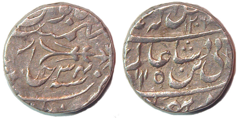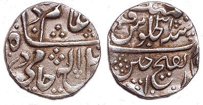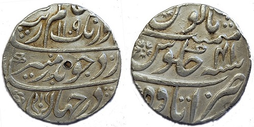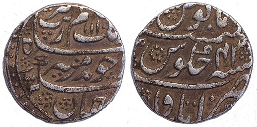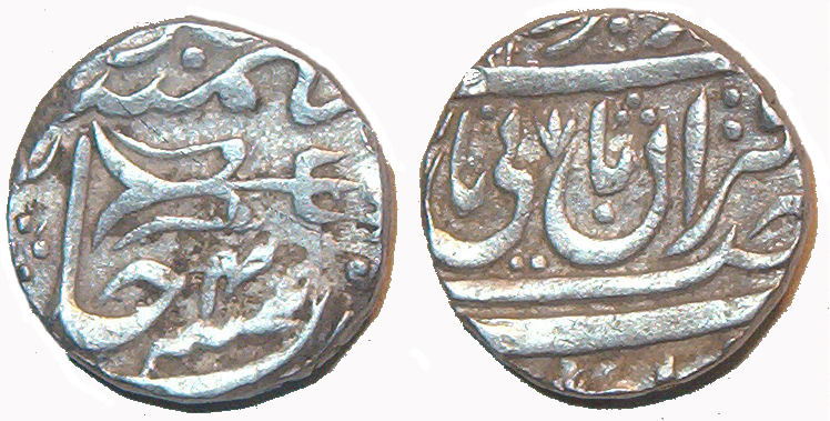 Jahanshi (Balwantnagar) mint Ob. Rev. AH1172 Ry.6 Rupee Silver 11.34g, 22mm KM 143 Zeno #334871 |