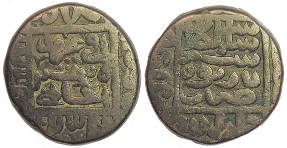 Muhammad bin Tughluq mint: no mint Ob. Rev. AH730 AE Paisa AE 8.47g, 21mm D0403; mintage: - Edge - Engraver: Zeno #254979 |