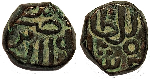 no mint Ob. Al-sultan al-A'zam Jalal al-dunya wa'l din Rev. Firuz shah in Arabic; Sri sultan Jalaludin in Nagari around AH689-695 / AD1290-1296 Jital 15mm, 3.60g Goron & Goenka D0200, Zeno #70844 |
