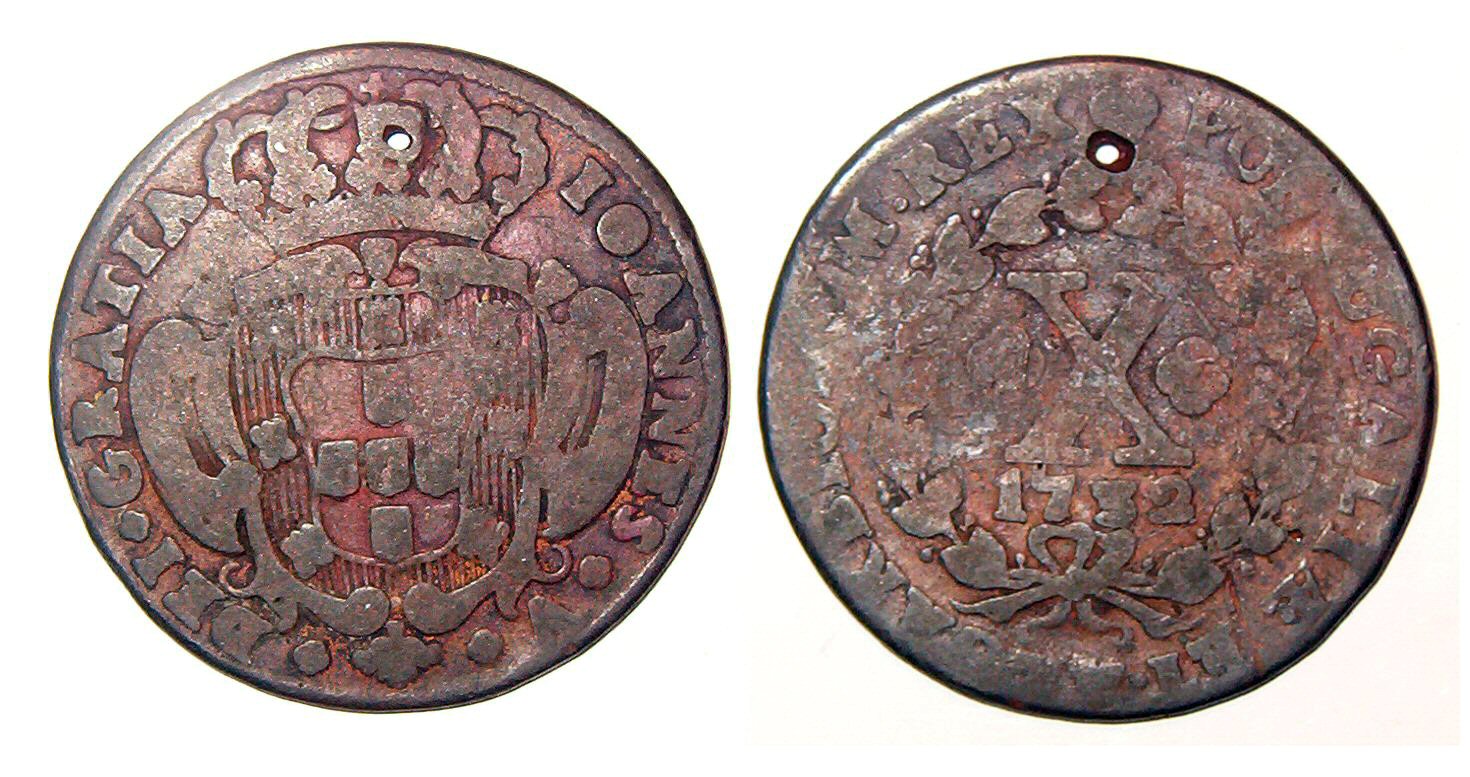 Obverse: IOANNES · V· · DEI·GRATIA Reference: Numista 22136 Historical Note: The 1732 ten‑reis piece was issued under John V, whose long and prosperous reign was fuelled by the immense wealth flowing into Portugal from Brazilian gold and diamond mines. This influx of precious metal allowed the crown to expand its minting operations and modernise the monetary system, while also financing the grand architectural and artistic projects that earned John V the epithet “the Magnanimous.” Low‑value copper denominations such as the 10 reis remained essential for everyday transactions among the urban and rural population, circulating widely alongside the more prestigious gold coinage of the period. The legends on both sides follow the formal Latin style typical of Portuguese issues of the early 18th century, emphasising royal authority and the kingdom’s dual title over Portugal and the Algarves. This coin represents the practical, workaday side of a monetary system otherwise dominated by the splendour of John V’s gold‑rich economy. |