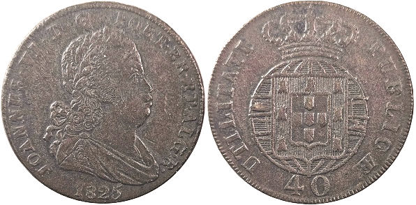Obverse:JOANNES.D.G.PORT. ET.ALG.P.REGENS / date Reference: Numista 24350 Historical Note: Although dated 1825, this pataco still carries João’s regent titulature, a legacy of the long transitional period following the royal court’s move to Brazil in 1807. By this time João had already been acclaimed King João VI (1816), yet large quantities of fiduciary copper continued to be struck to older patterns to meet persistent shortages of small change across the kingdom. The inscription *UTILITATI PUBLICAE* (“for public utility”) reflects the state’s effort to reinforce confidence in these low‑value issues at a moment when Portugal was navigating post‑war reconstruction, administrative decentralization, and the growing political tensions that would soon culminate in the Liberal Wars. These late patacos represent the final phase of the pre‑reform réis system before the monetary restructuring of the 1830s. |