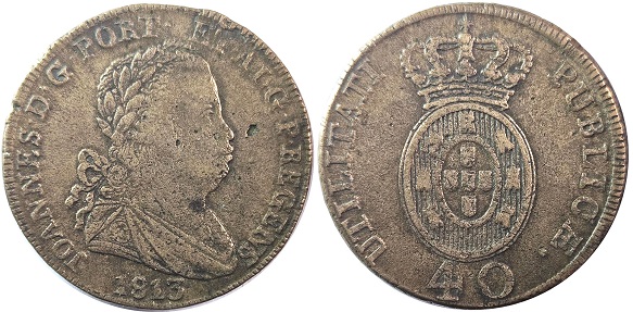 Obverse: MARIA.I.ET.PETRUS.III.D.G.P.ET.BRASIL.REGES. / XX / date. Reference: Numista 35907 Historical Note: The countermarked 40‑to‑20 reis issues belong to the turbulent monetary years surrounding the transfer of the Portuguese court to Brazil in 1807–1808. João, acting as Prince Regent for Queen Maria I, oversaw a complex currency environment in which older metropolitan copper coins were repeatedly revalidated, devalued, or counterstamped to meet chronic shortages of small change. The globe reverse with the motto *PECUNIA TOTUM CIRCUMIT ORBEM* (“Money circles the whole world”) reflects Portugal’s self‑image as a global trading empire, even as its Atlantic economy was being reshaped by war, British alliance, and the growing administrative importance of Brazil. These counterstamps allowed worn or outdated pieces to remain in circulation at adjusted values, a practical solution widely used across Portuguese territories during this period. |
