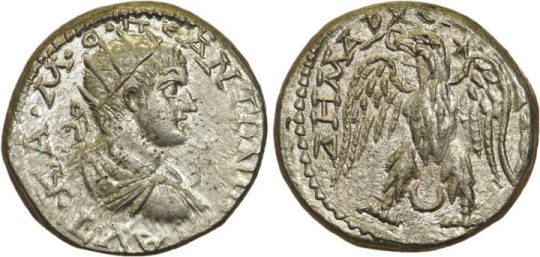 radiate, laureate, draped and curiassed bust right |